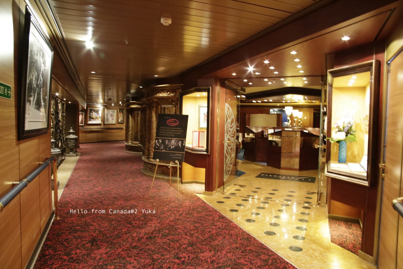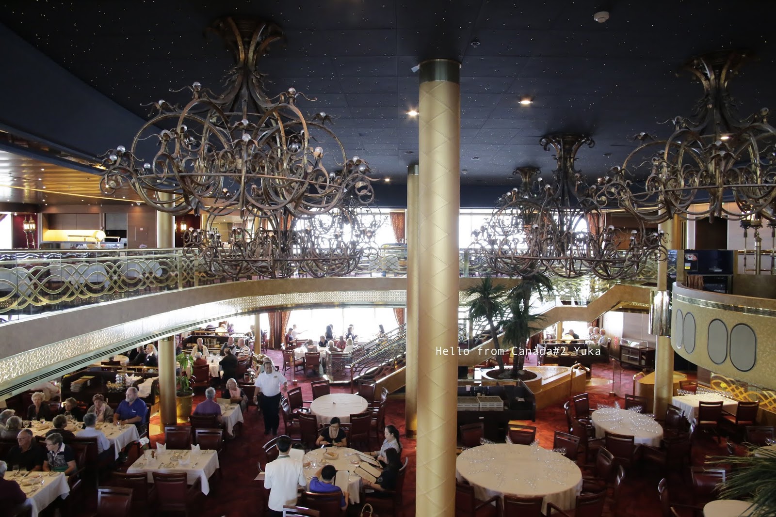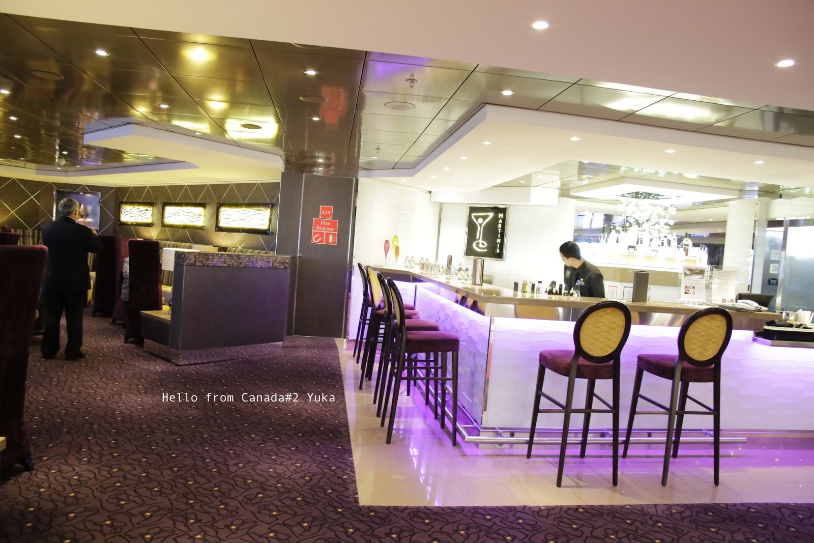 お部屋の面倒をみてくれるクルーは、旅行の間、この部屋にはこの人!って決まっているのだけど、めちゃフレンドリーで、廊下のむこーにいるのにみつけたら、”ハイ、ユカー!!!”って叫んでくれる。